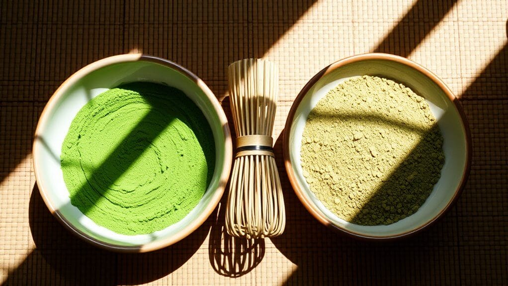 - Color indicates quality differences: ceremonial grade displays vibrant emerald hue, while culinary grade shows a duller green appearance.