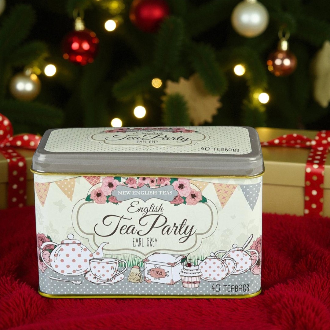 Indulge in the sophisticated charm of our English Tea Party Tea Tin, where timeless elegance meets delightful design. This collectable treasure, adorned with vintage bunting and whimsical polka dots, houses 40 exquisite Earl Grey teabags ? the quintessential choice for refined tea lovers.