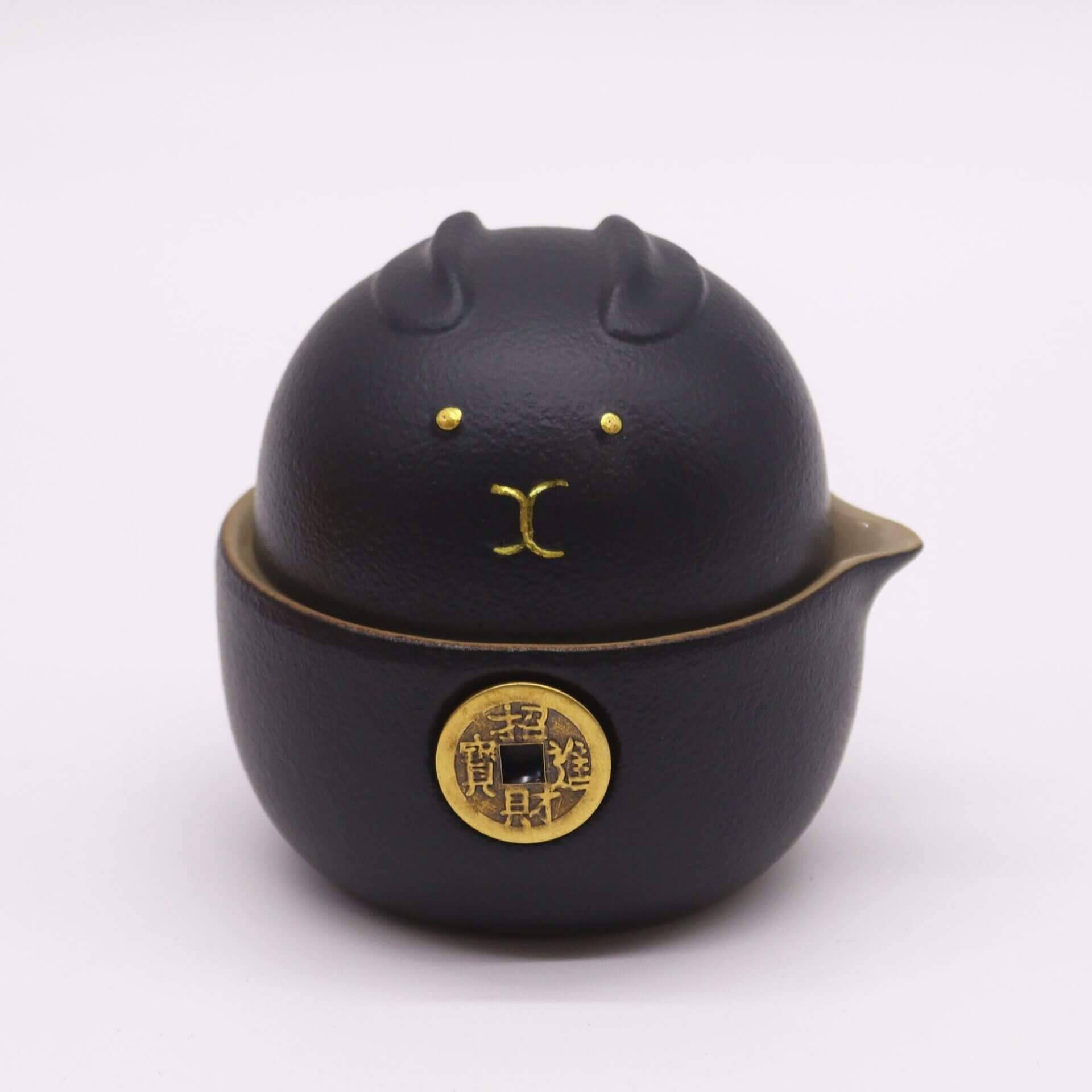 Money Cat Ceramic Tea Set – Black Edition with Travel Case